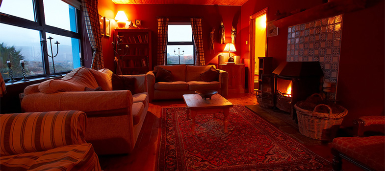 And just imagine relaxing in the comfortable sitting room, watching the flames dance in the solid fuel stove, burning the local peat with it's unmistakeable smell! Glance out through the large picture windows and watch the mood changes of Errigal mountain. Candles, wine and some music add the finishing touches to an idyllic setting.